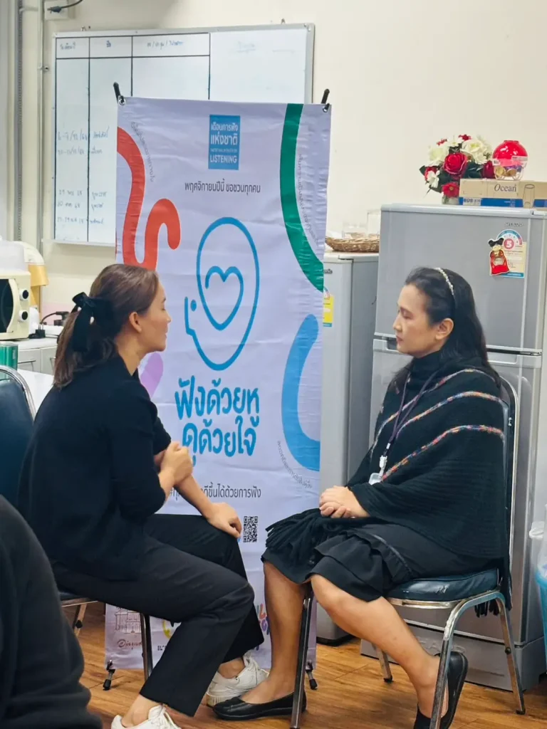 เพื่อพัฒนาทักษะการฟังที่ดีให้กับผู้นำในโรงพยาบาล นำสู่การขยายผลในบุคลากรในหน่วยงานของตนเองต่อไปรูปแบบการจัดกิจกรรม:แลกเปลี่ยนเรียนรู้ และฝึกทักษะการฟังในสถานการณ์จริง